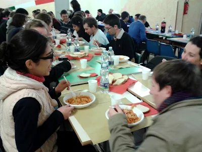 Dopo la Santa Messa, tutti insieme a condividere un "ricco" pranzo preparato per gli Scout e la comunità parrocchiale nel salone dell'Istituto Cavanis.