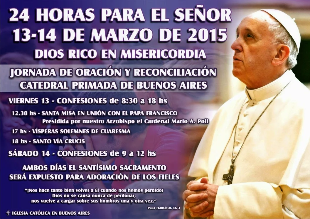 Buenos Aires: 24 horas para el Señor. Pubblicato da concuoredimadre marzo 13, 2015 Ottieni link Facebook X Pinterest Email Altre app Commenti
