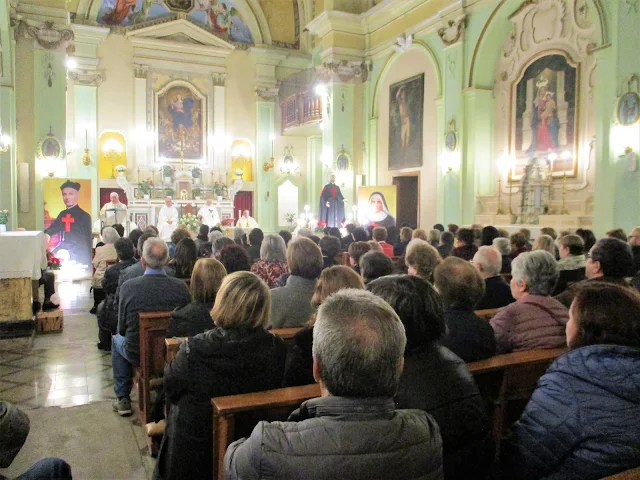 Don Claudio, durante la sua omelia ci diceva: la consapevolezza che 125 anni fa, la Beata Madre Giuseppina Vannini, ci confermava nel nostro cammino di Figlie di San Camillo a Mesagne, varcando le soglie di questa Chiesa di Loreto e additando a noi sue figlie quale esempio luminoso e sicuro modello da imitare e seguire il nostro Santo Padre Camillo, di cui in questa Chiesa si conserva l’immagine da Lei portata, che splendeva di luce davanti all’altare. “Nella comunione dei santi sentiamo la presenza di San Camillo, del Beato Padre Luigi Tezza e della Beata Madre Giuseppina Vannini e di tutte le Figlie di San Camillo che in questa cittadina hanno pregato, offrendo il loro servizio di carità fra le corsie dell’Ospedale”.