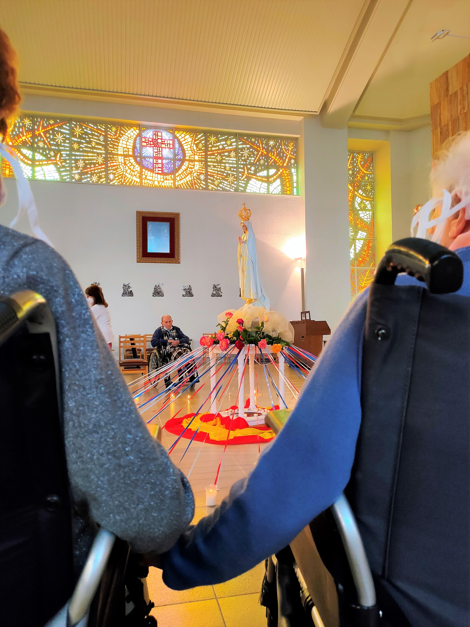 Tutti i giorni i cari ospiti della casa di Riposo San Camillo (Hogar San Camilo) a Santa Marta de Tormes, Salamanca, si radunano nella cappella per pregare il Santo Rosario, unendosi in preghiera secondo le intenzioni che il Santo Padre ha proposto per questo Mese Mariano per sconfiggere la pandemia.