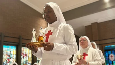 Celebrazione Eucaristica durante la quale Sr. Florence e Sr. Julie hanno emesso la loro Professione perpetua e Sr. Beata ha ricordato i suoi 25 anni di professione religiosa. Presieduta da don Celestino Avocan, padre Guy Ouedraogo M.I. e concelebranti, tra loro era presente il consultore generale dell'Ordine camilliano padre Medard Abuè.